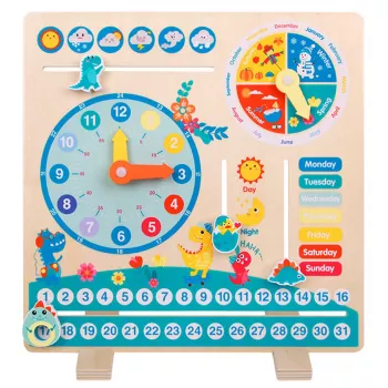 Wooden Dinosaur Calendar Clock Montessori Educational Toy for Kids